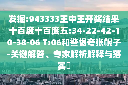 “發(fā)掘”一詞通常用于尋找、探索未知或隱藏的事物,而關(guān)于“943333王中王開獎結(jié)果”,這似乎與某種游戲或娛樂游戲的開獎結(jié)果有關(guān),需要明確的是,任何與游戲或娛樂有關(guān)的預(yù)測、推測或所謂的“發(fā)掘”結(jié)果都是不可靠的,請公眾不要輕信此類信息,避免陷入不必要的風(fēng)險。