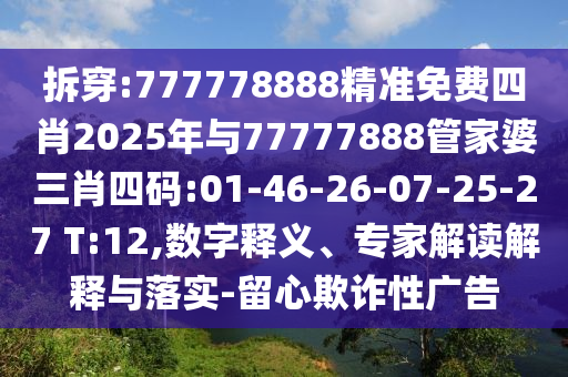777778888精準(zhǔn)免費(fèi)四肖2025年與77777888管家婆三肖四碼:01-46-26-07-25-27 T:12:數(shù)字釋義、專家解讀解釋與落實(shí)