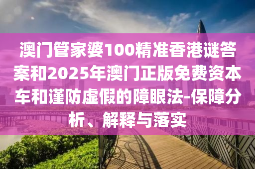 澳門管家婆100精準香港謎答案和2025年澳門正版免費資本車和謹防虛假的障眼法-保障分析、解釋與落實