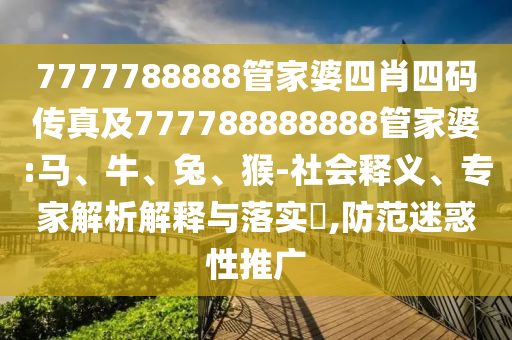 7777788888管家婆四肖四碼傳真及777788888888管家婆:馬、牛、兔、猴-社會釋義、專家解析解釋與落實(shí)?,防范迷惑性推廣