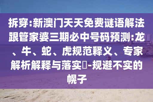 拆穿:新澳門天天免費(fèi)謎語(yǔ)解法跟管家婆三期必中號(hào)碼預(yù)測(cè):龍、牛、蛇、虎規(guī)范釋義、專家解析解釋與落實(shí)?-規(guī)避不實(shí)的幌子