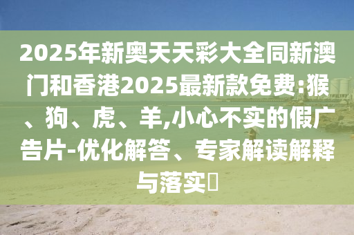 2025年新奧天天彩大全同新澳門和香港2025最新款免費(fèi):猴、狗、虎、羊,小心不實(shí)的假廣告片-優(yōu)化解答、專家解讀解釋與落實(shí)?
