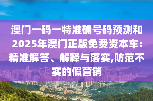 關(guān)于澳門一碼一特準(zhǔn)確號(hào)碼預(yù)測(cè)和資本車虛假宣傳的精準(zhǔn)解答、解釋與落實(shí)