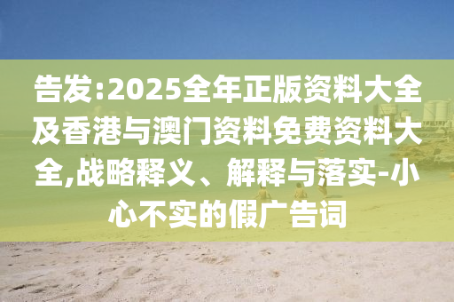 告發(fā):2025全年正版資料大全及香港與澳門資料免費(fèi)資料大全,戰(zhàn)略釋義、解釋與落實(shí)-小心不實(shí)的假廣告詞