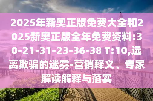 2025年新奧正版免費大全和2025新奧正版全年免費資料:30-21-31-23-36-38 T:10的營銷釋義、專家解讀解釋與落實