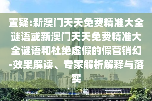 在解讀“新澳門天天免費精準(zhǔn)大全謎語”時,我們必須警惕其中可能存在的虛假宣傳和假營銷幻。