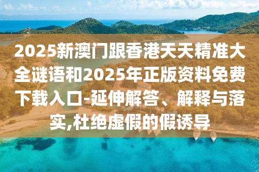2025新澳門跟香港天天精準(zhǔn)大全謎語(yǔ)和2025年正版資料免費(fèi)下載入口-延伸解答、解釋與落實(shí),杜絕虛假的假誘導(dǎo)