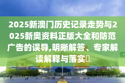 摘要:本文關(guān)注2025年新澳門歷史記錄走勢與正版資料大全,強調(diào)防范廣告誤導的重要性。文章將提供明晰的解答和專家解讀,解釋如何獲取準確信息并落實防范措施,幫助讀者更好地了解澳門歷史記錄走勢,避免受到不實廣告的影響。本文還將探討如何落實相關(guān)措施,確保信息的準確性和可靠性。