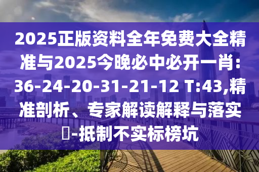 2025正版資料全年免費大全精準(zhǔn)與2025今晚必中必開一肖:36-24-20-31-21-12 T:43的精準(zhǔn)剖析、專家解讀解釋與落實?