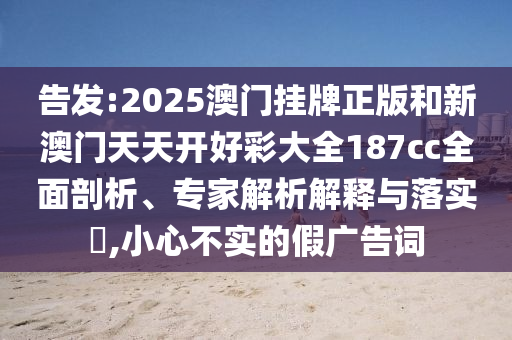 告發(fā):2025澳門(mén)掛牌正版和新澳門(mén)天天開(kāi)好彩大全187cc全面剖析、專家解析解釋與落實(shí)?,小心不實(shí)的假?gòu)V告詞
