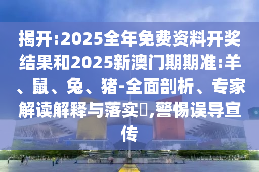 揭開:2025全年免費資料開獎結(jié)果和2025新澳門期期準:羊、鼠、兔、豬-全面剖析、專家解讀解釋與落實?,警惕誤導宣傳