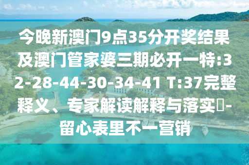 今晚新澳門9點(diǎn)35分開獎(jiǎng)結(jié)果及澳門管家婆三期必開一特:32-28-44-30-34-41 T:37:完整釋義、專家解讀解釋與落實(shí)?