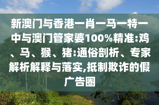 新澳門(mén)與香港一肖一馬一特一中與澳門(mén)管家婆100%精準(zhǔn):雞、馬、猴、豬:通俗剖析、專(zhuān)家解析解釋與落實(shí),抵制欺詐的假?gòu)V告圈