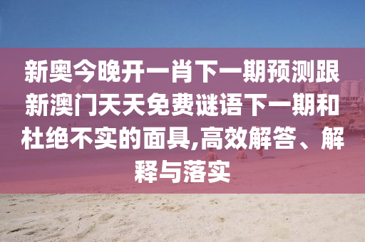 關(guān)于新奧今晚開一肖下一期預(yù)測和新澳門天天免費謎語下一期的解析、解釋與落實,以及杜絕不實面具的警惕性宣傳,我將從全面釋義、專家解讀與落實、警惕虛假宣傳三個方面進行詳細(xì)闡述。