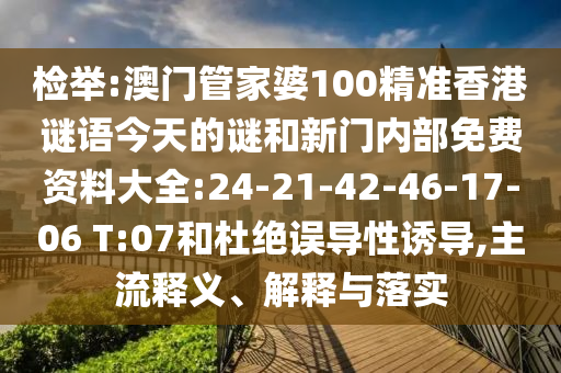 澳門(mén)管家婆100精準(zhǔn)香港謎語(yǔ)今天的謎和新門(mén)內(nèi)部免費(fèi)資料大全:24-21-42-46-17-06 T:07:主流釋義、解釋與落實(shí)
