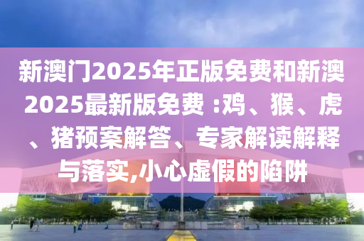 摘要:關(guān)于新澳門2025年正版免費(fèi)和新澳2025最新版免費(fèi)的議題,涉及雞、猴、虎、豬等生肖的預(yù)案解答、專家解讀解釋與落實(shí)。提醒公眾要小心虛假的陷阱,這些內(nèi)容可能存在風(fēng)險(xiǎn)和不實(shí)信息。建議公眾謹(jǐn)慎對(duì)待,不輕信未經(jīng)證實(shí)的預(yù)測(cè)和解讀,以免上當(dāng)受騙。