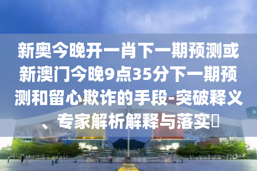 新奧今晚開一肖下一期預(yù)測”與“新澳門今晚9點35分下一期預(yù)測”的揭示、突破釋義、專家解析解釋與落實及留心欺詐手段的探討
