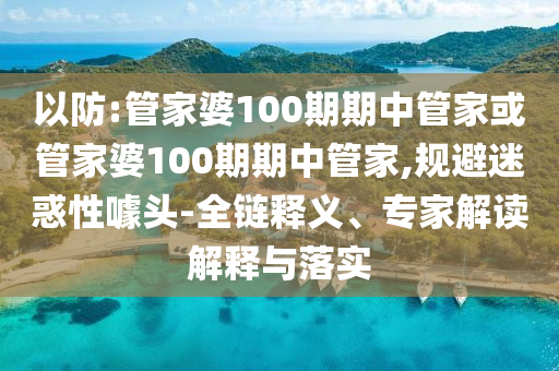 以防:管家婆100期期中管家或管家婆100期期中管家,規(guī)避迷惑性噱頭-全鏈釋義、專家解讀解釋與落實