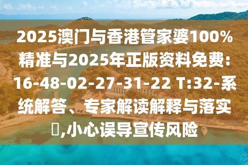 2025澳門(mén)與香港管家婆100%精準(zhǔn)與2025年正版資料免費(fèi):16-48-02-27-31-22 T:32-系統(tǒng)解答、專(zhuān)家解讀解釋與落實(shí)?,小心誤導(dǎo)宣傳風(fēng)險(xiǎn)