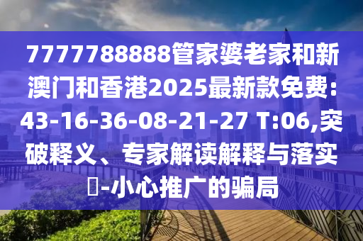 摘要:,,關(guān)于數(shù)字組合7777788888的解讀,涉及所謂的“管家婆老家”與最新款免費(fèi)信息,包括新澳門和香港地區(qū)在2025年的最新趨勢(shì)。提到數(shù)字如43、16、36等可能與某種解釋或解讀有關(guān),提醒公眾小心騙局推廣,避免陷入陷阱。此類信息需謹(jǐn)慎對(duì)待,避免受騙。